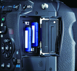 Côté photo, les deux leviers permettant de choisir les zones d’exposition et de mise au point ont disparu : le premier estremplacé par une touche à gauche du prisme, le second voit sa fonction attribuée au nouveau bouton AF mode ou au menu Info (comme sur les K-500 et K-50).Enfin, la trappe de droite cache non plus un, mais deux emplacements SD, et l’écran est légèrement agrandi. |