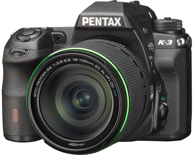 PENTAX K-3 Les derniers reflex Pentax partageaient tous la même base technique. Deux ans après l’entrée dans le groupe Ricoh, il était temps de reprendre profondément la recette pour aller affronter face à face les Nikon D7100 et Canon EOS 70D : c’est la tâche attribuée au K-3, nouveau vaisseau amiral de la gamme et (enfin) vraie nouveauté. Présentation : Premier avis et Fiche techniqueEn 2010, trois reflex experts étaient nés en un mois : le Canon EOS 60D, le Nikon D7000 et le Pentax K-5. Le premier avait un écran orientable et rapidement un prix intéressant, le deuxième misait sur autofocus ultra-complet, protection tout-temps et double emplacement SD, le troisième profitait d’une compacité record, d’un stabilisateur intégré et de fonctions photo avancées. Trois ans plus tard, le Nikon D7100 a un peu progressé, le Canon EOS 70D a largement revu ses ambitions à la hausse... et Pentax présente enfin le vrai remplaçant du K-5 (dont le K-5 II était une évolution mineure), baptisé K-3. Dehors et dedans: Extérieurement, le K-3 ressemble beaucoup à ses aînés : le châssis est de toute évidence toujours celui du K-7, apparu en 2009. Il faut dire que Pentax a ici une recette qui marche : son reflex expert est le plus compact du segment et, en même temps, l’un des plus costauds, avec un boîtier entièrement jointoyé résistant à la pluie et à la poussière, ainsi qu’un viseur à pentaprisme couvrant 100 % du champ photographié.Intérieurement, la révolution est quasiment complète:rares sont les éléments conservés du K-5 II. |